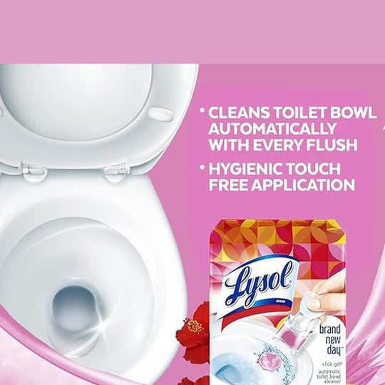 Details Lysol brand new day automatic toilet bowl Cleaner, helps clean and freshen your toilet automatically with every flush. It hangs on the inside of the toilet bowl to help you maintain your toilet between deep cleaning your toilet bowl. It Not only cleans your toilet bowl with every flush, but it also freshens your entire bathroom. It fights toilets rings, helps prevents stains and has new premium fragrances. They last for up to 8 weeks, and are easy to use.
