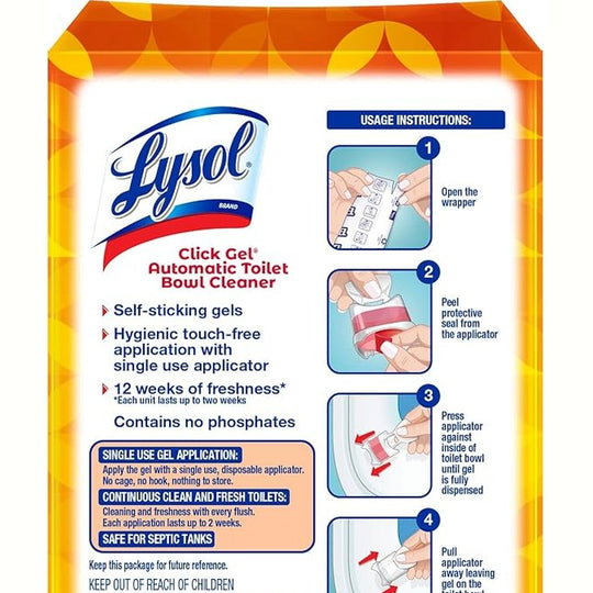 - ONE CLICK BATHROOM APPLICATION Lysol Click Gel Automatic Toilet Bowl Cleaner keeps toilets clean and fresh with just one click and after every flush.