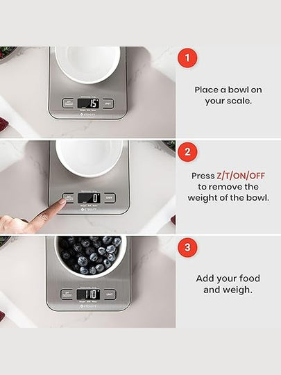 - Supports 5 units (ozlbozfl'ozgmL), tare function, and includes 2 AAA batteries for hassle-free operation