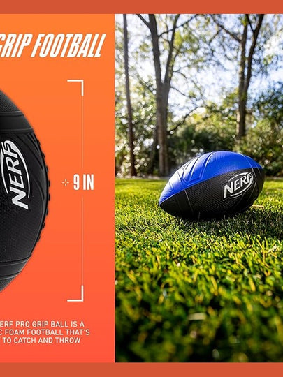 Details Kickoff the football fun and jump in the game today with the NERF Pro Grip Kids Foam Football! These junior footballs are constructed with NERF semi-soft foam so all players can have fun playing football indoors and out. Designed for smaller hands, this 9" inch junior sized football is easy for kids to grip, throw and catch so they can easily get in on the football fun. The soft foam interior is protected by an outer layer that helps make this ball perfect for both indoor and outdoor football games. Fun and durable enough for indoor and outdoor games in the backyard or at the beach, the NERF Pro Grip Kids Football is the perfect football to take on the go anywhere. This ball is perfect for touch football games at the park, playing catch at the tailgate, or helping kids practice the basics while having a ton of fun. If your kids are ready to get in the action or kickoff their football careers, grab them a NERF Pro Grip Kids Foam Football and start playing today!
