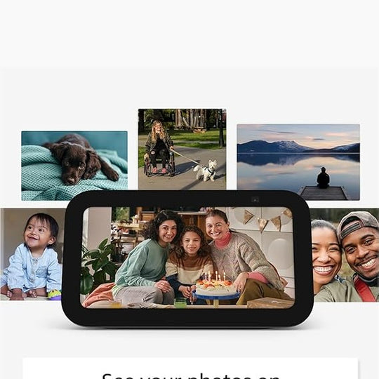 - See your photos on display When not in use, set the background to a rotating slideshow of your favorite photos. Invite family and friends to share photos to your Echo Show. Prime members also get unlimited cloud photo storage.