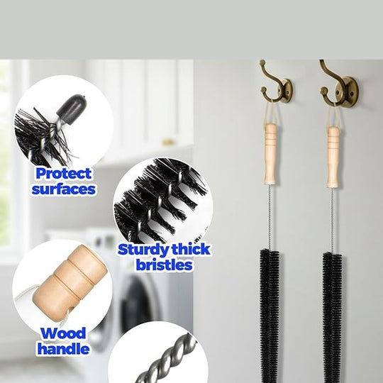 • 2Pack Hosehold Cleaning Brush Efficiently remove trapped lint, dust and pet hair from dryer vents, exhaust ports, and under appliances to prevent fire hazards and improve dryer performance