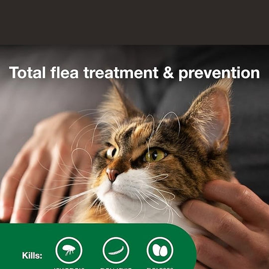 - Delivers total flea protection kills adult fleas, flea larvae and flea eggs through contact